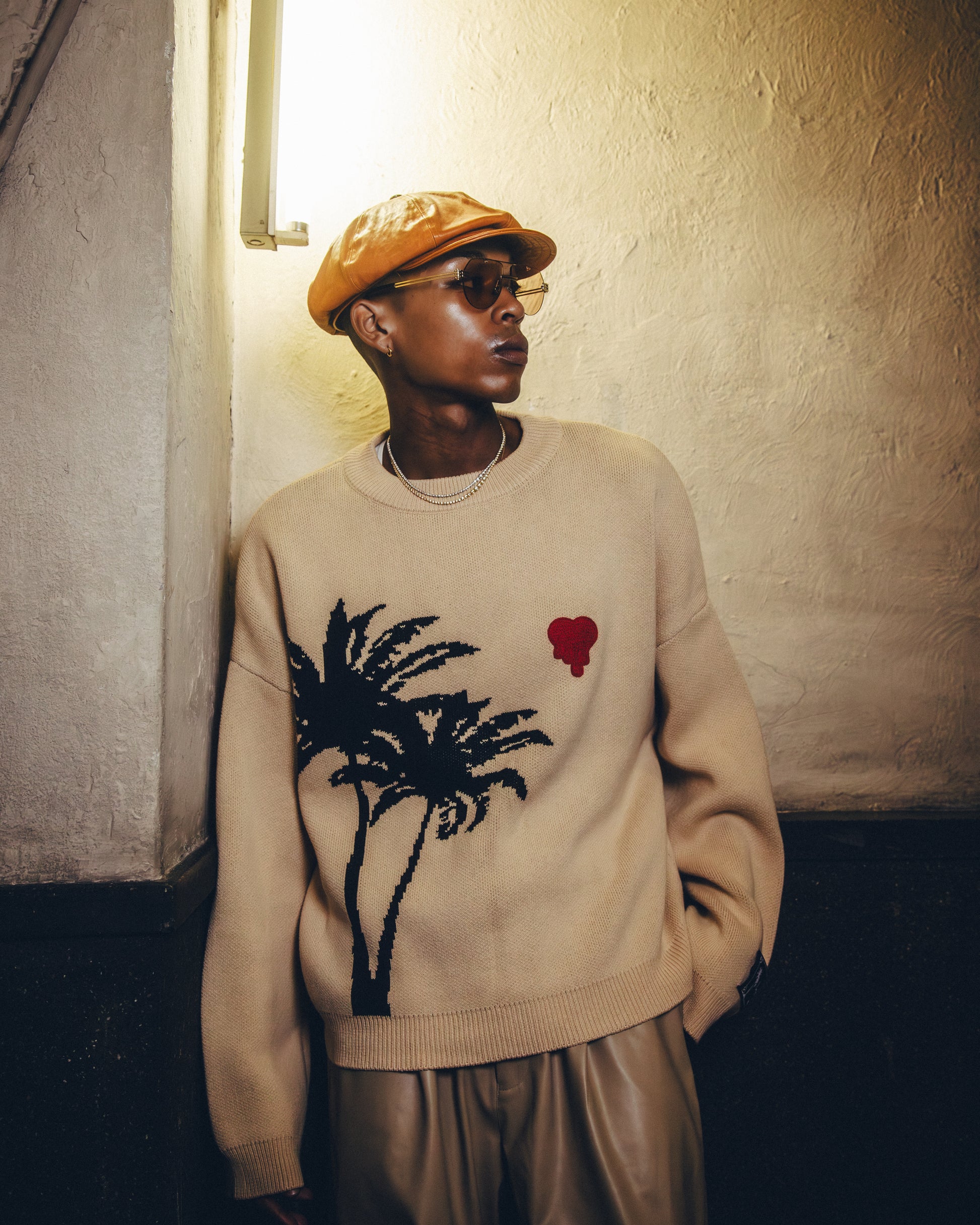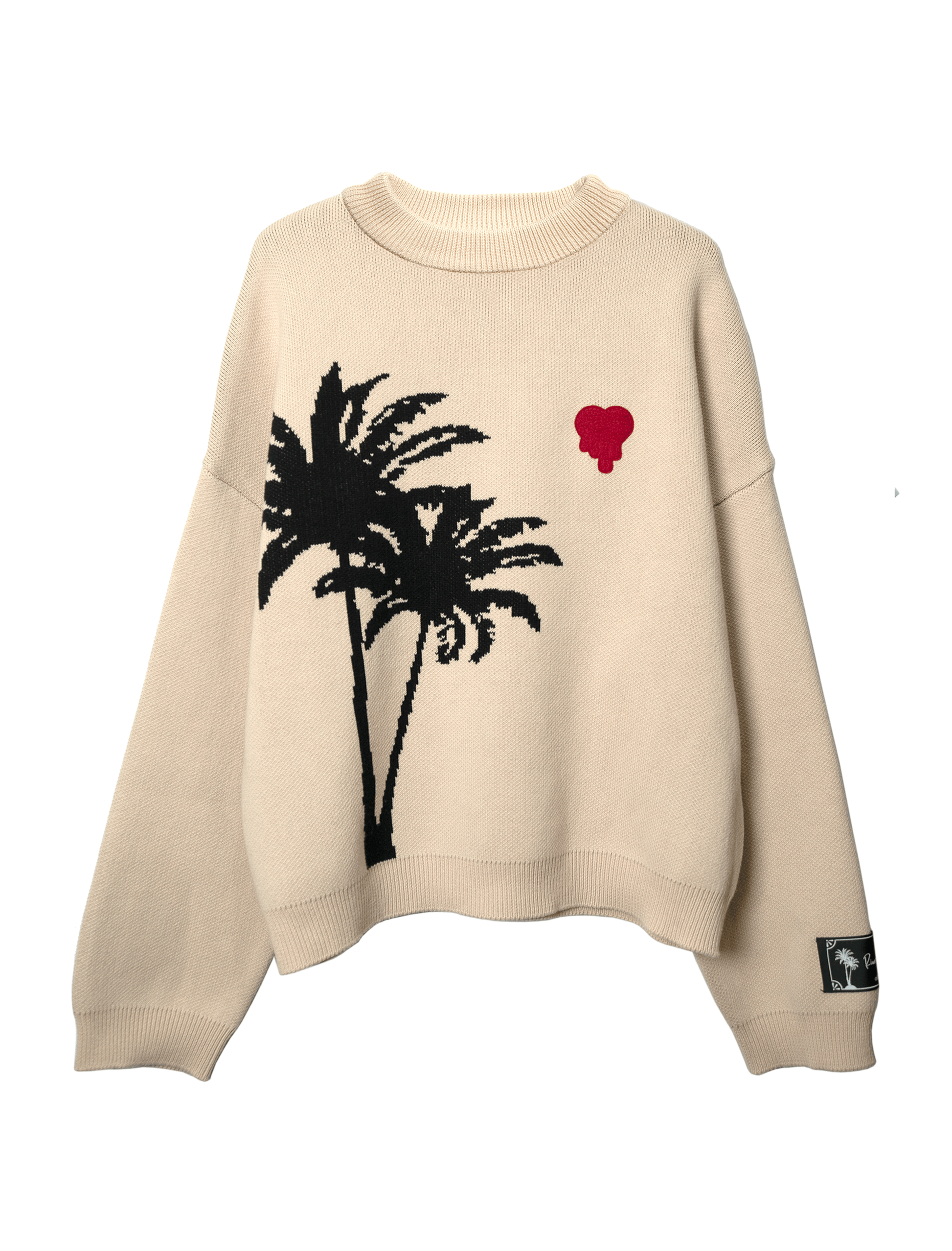 アイコニックなパームツリーのデザインに、胸元の赤いハートロゴがアクセントを加えています。