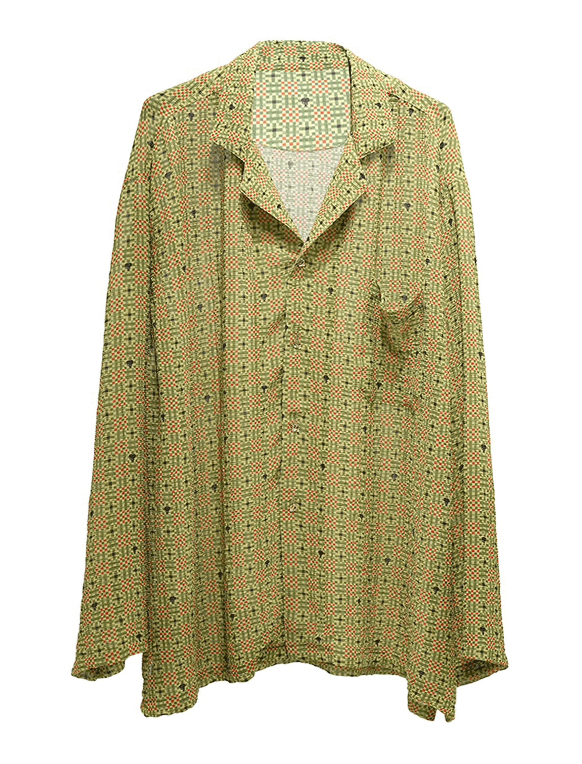 細かく規則的なチェック柄は、動くたびに輪郭がにじみ、