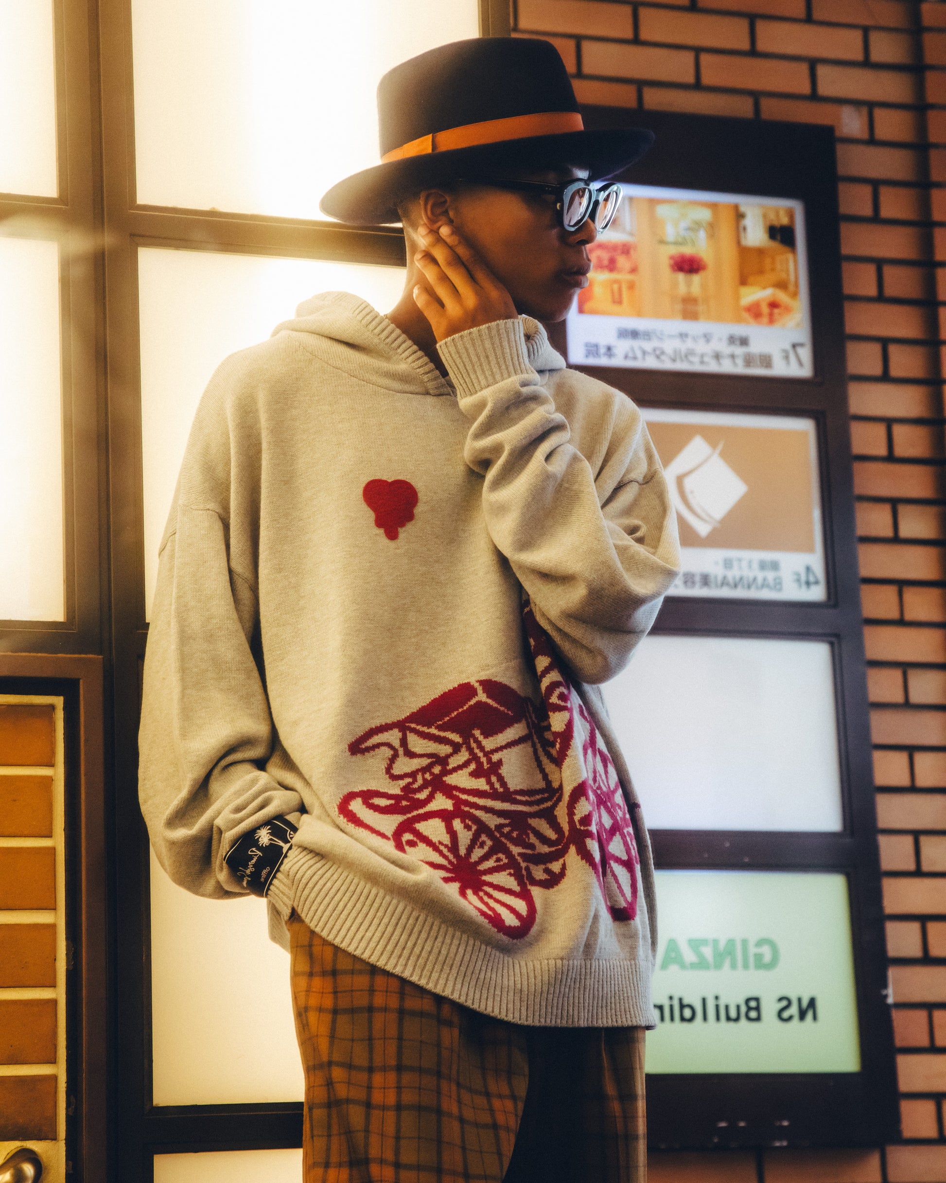 左胸にはブランドアイコンでもある“Melting Heart”刺繍パッチ。