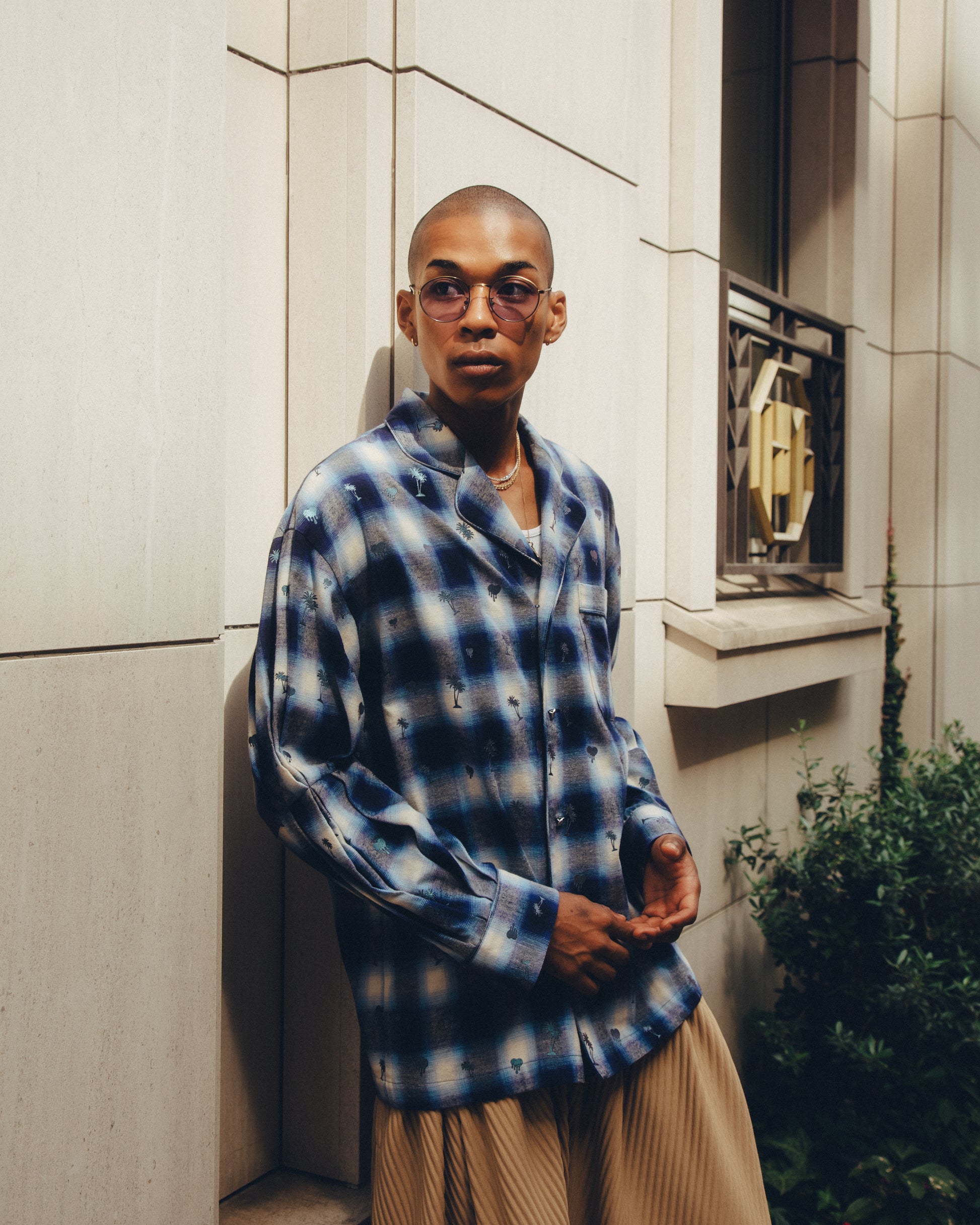 This piece is accented with cufflinks made from deadstock American acrylic.