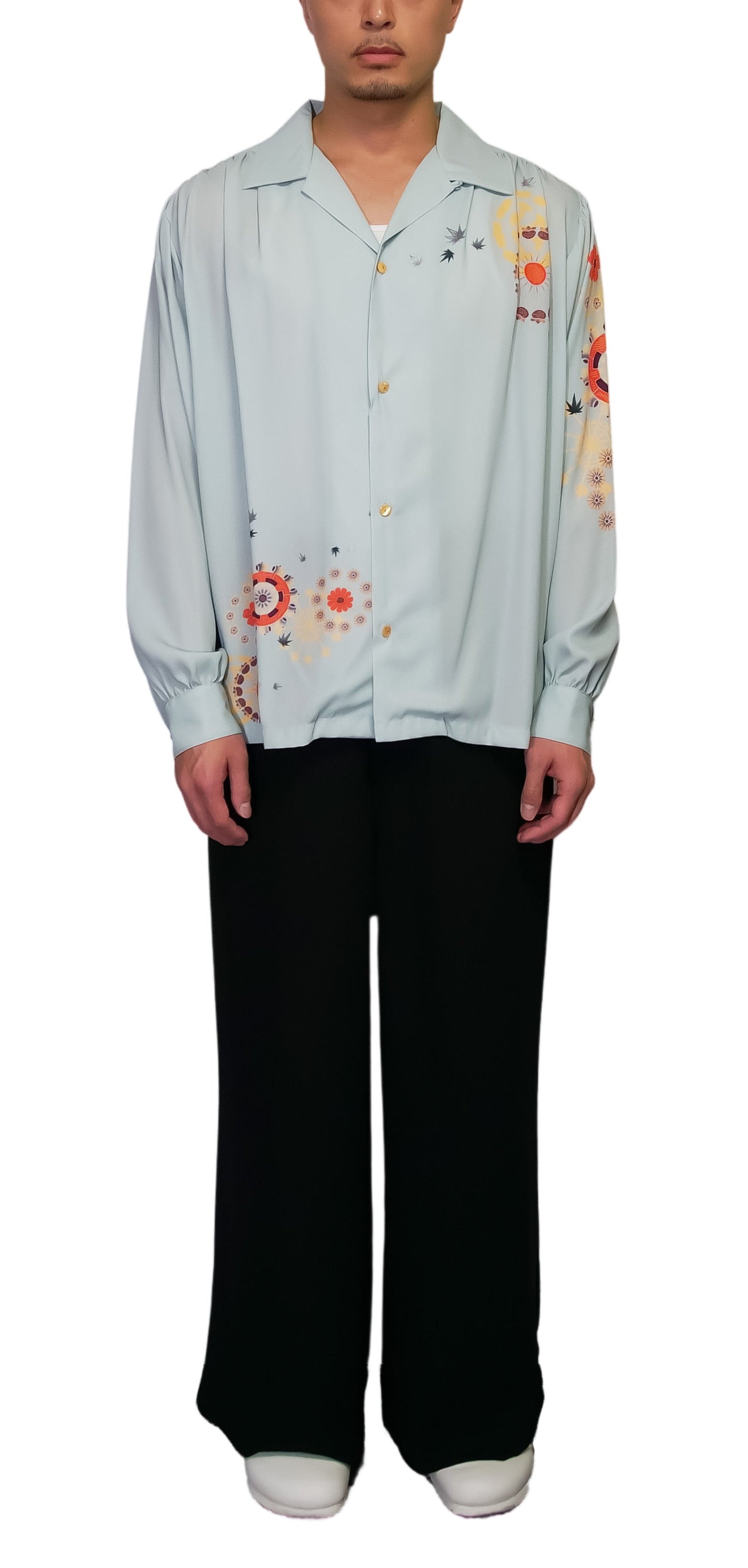 The graphic print incorporates a waterwheel motif with a taste of Tokyo's downtown area.