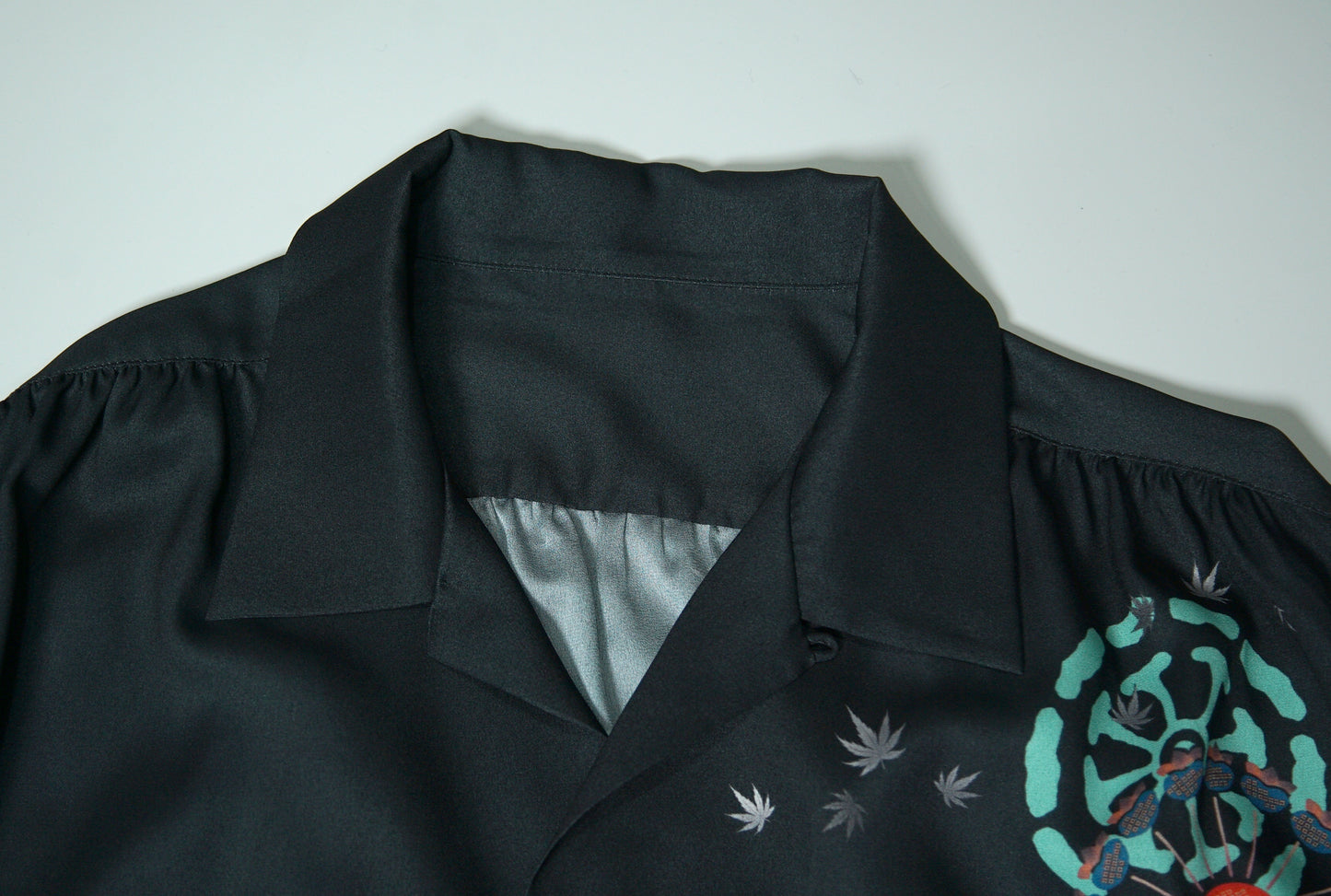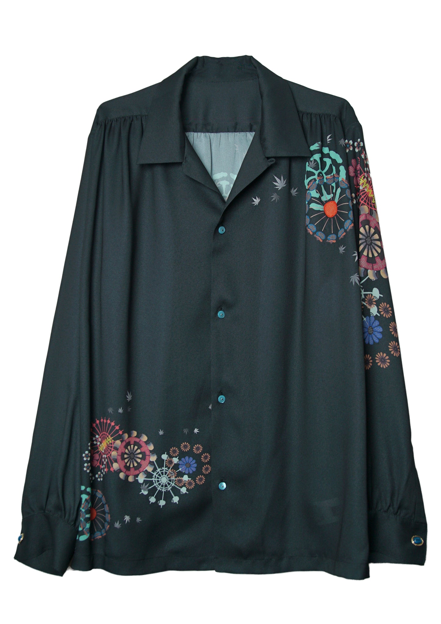 The graphic print incorporates a waterwheel motif with a taste of Tokyo's downtown area.