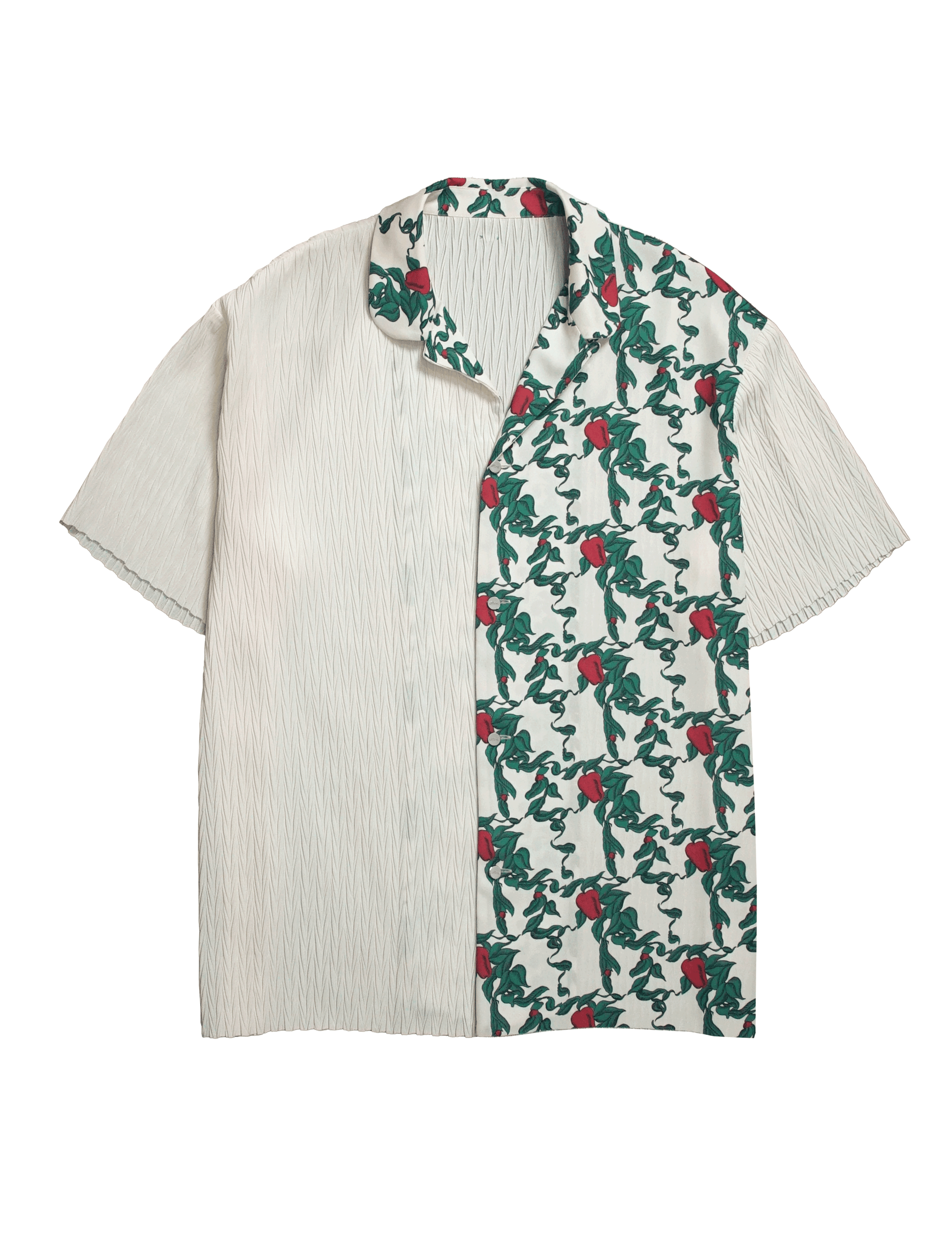 裁つことで、縫わない。静かに遊ぶ大人のための、片身替わりの一枚です。